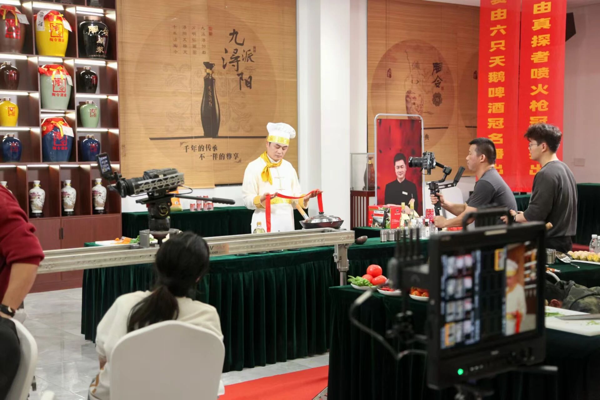 此次实地取景,《江西小炒王》剧组深入陶令酒业的文化产品展示厅等核心区域,将美食的热烈与美酒的温润深度交融。镜头内,大厨掌勺烹饪,小炒香气升腾;镜头外,陶令酒入杯清冽,酒香与菜香交织缠绕。每一帧画面,既是对“江西小炒”市井烟火气的生动记录,亦是对陶令酒“天人共酿”的诚挚礼赞,为短剧创作赋予丰富的场景内涵与文化厚度。