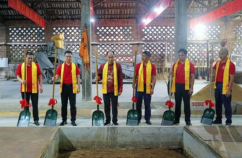 “开酿喽……”随着开窖令的庄严授予与交接完成,秋酿仪式步入核心的开窖酿造环节。在酒香四溢的酿造车间内,董事长李武杰先生躬身舀取第一桶清澈的河水,缓缓洒入粮料中,继而执铲翻拌。这一举动,于细微处见精神,于平凡中显匠心,尽显陶令人对传统酿艺的恪守与敬畏。当第一甑头排酒潺潺流出,浓郁的窖香与粮香交织升腾,瞬间弥漫整个车间,宣告新一年美酒丰酿的开启。