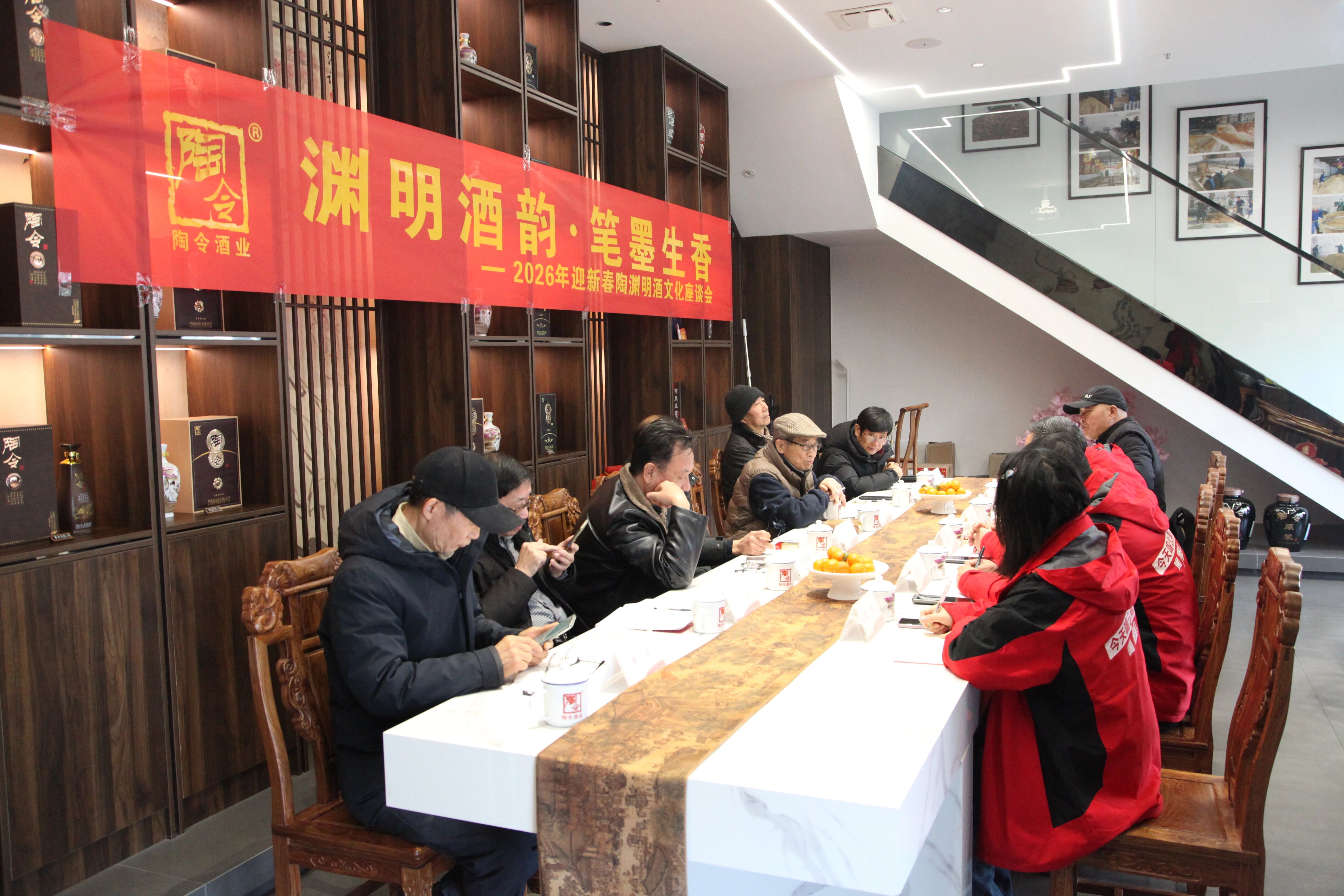 1月23日,陶令酒业2026年迎新春陶渊明酒文化座谈会在陶令酒庄(八里湖店)隆重举行。本次活动以“渊明酒韵·笔墨生香”为主题,旨在深度挖掘九江地域文化、渊明文化、白酒文化的文化内涵,探索陶令品牌与文艺界可持续、共发展的合作新模式,以文学创作赋能文化传承,也为陶令酒业即将创刊的《陶令诗刊》注入源头活水。